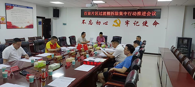 百畝片區(qū)過渡棚拆除集中行動(dòng)推進(jìn)會(huì)議現(xiàn)場(chǎng)