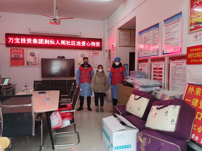 12月1日,萬寶投資集團黨員志愿者到金色桃園小區(qū)助力疫情防控工作,與社區(qū)工作人員一同維護現(xiàn)場秩序,并向小區(qū)居民宣傳疫情防控知識。12月3日,萬寶投資集團開展“黨員進社區(qū)、服務(wù)在基層”活動,把N95口罩、被褥、枕頭和折疊床等一批愛心防疫物資送到仙人閣社區(qū),為社區(qū)疫情防控工作開展提供了有力的物資保障,也為在嚴寒中堅守的一線工作人員送去了關(guān)懷和溫暖。