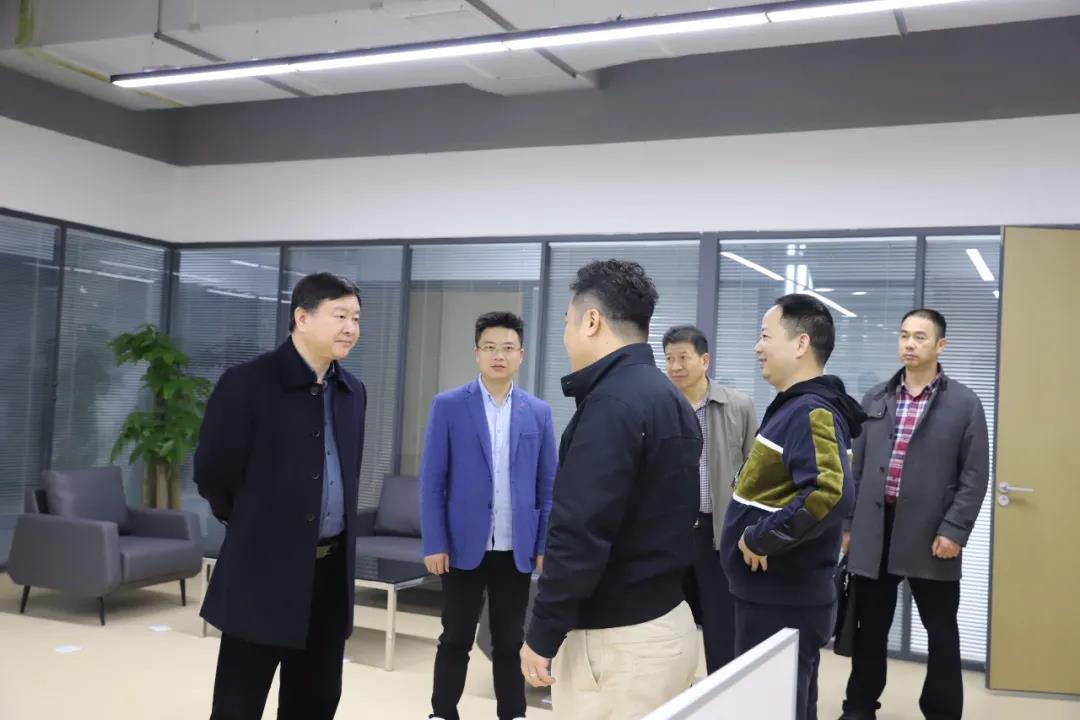 蘇旻(左一)、謝緯(右二)等參觀企業(yè)新辦公場(chǎng)地